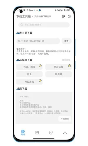 这次大家又可以用上下载工具箱永久VIP会员版,不但解锁了高级功能,而且还去除了广告,在线进入,就拥有支持解析短视频下载无水印视频,支持下载磁力资源和无损音乐,蓝奏云等平台独家资源,支持国内主流平台和国际视频的无水印下载等待功能,帮助你们无论是影视资源,小视频轻松下载。