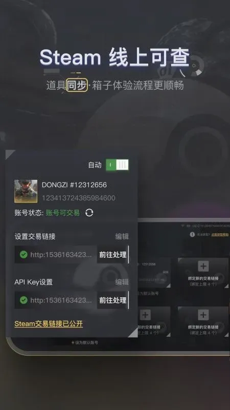 1、支持一键绑定Steam账号,开箱前自动校验账户状态与市场权限;