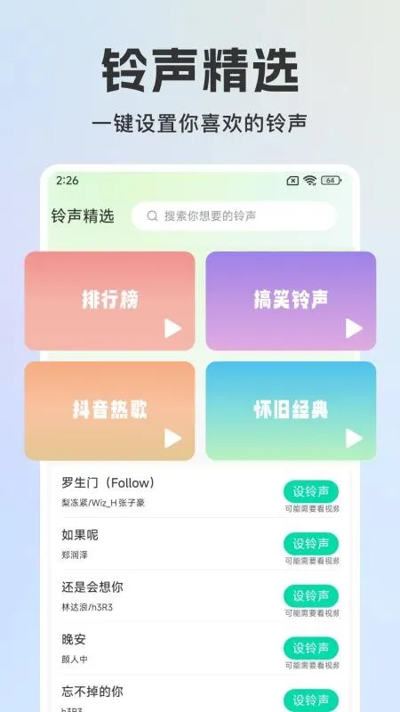 海量铃声,快速设置超方便。