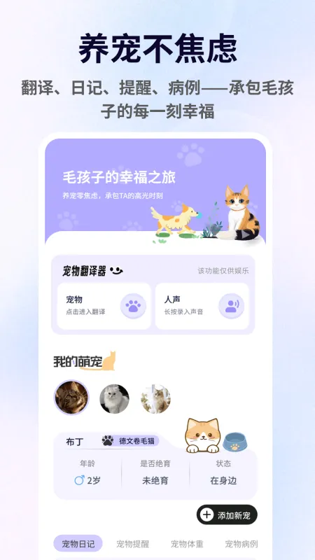 一站式养宠全能助手,让科学养宠更省心。