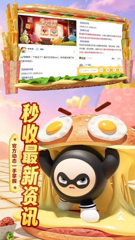 1.资讯超及时:作为蛋仔派对官方种草社区,蛋壳能让你随时了解游戏最新资讯,像版本更新、福利活动、赛季公告、官方动态等一手信息全掌握,绝不错过任何精彩内容。