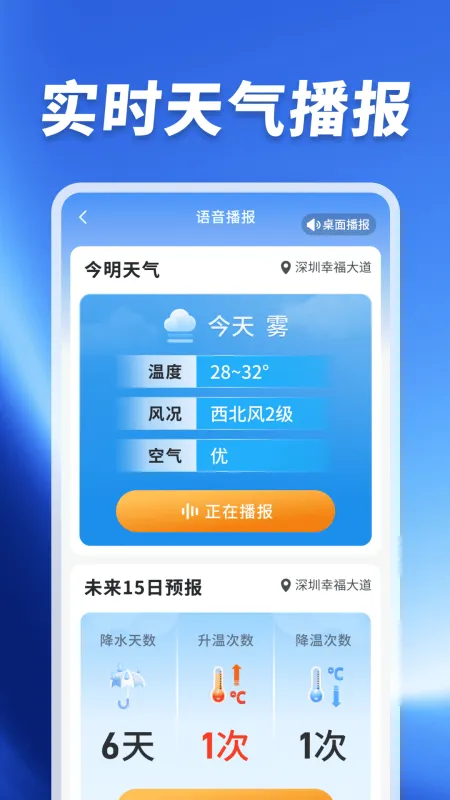 4. 智能语音搜索:支持智能语音搜索功能,用户可以通过语音指令查询天气,无需打字,更加便捷。