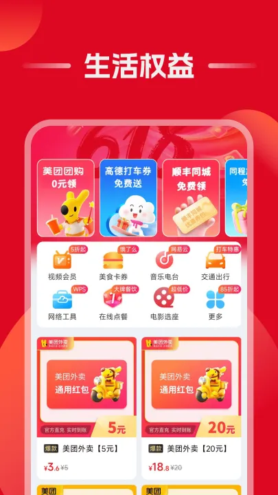 2、外卖补贴:饿了么、美团外卖红包天天领,下单还有高额优惠拿。