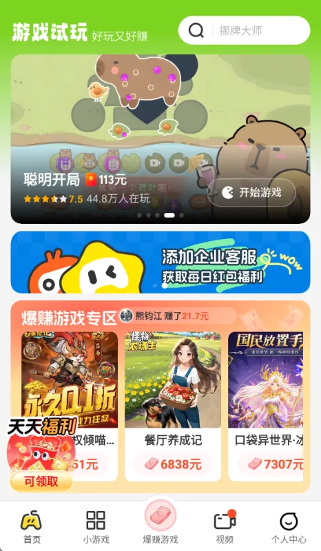 任务系统:用户可以通过完成日常试玩任务、成就任务等赚取红包奖励,例如观看短视频、参与趣味测试或完成特定游戏关卡。