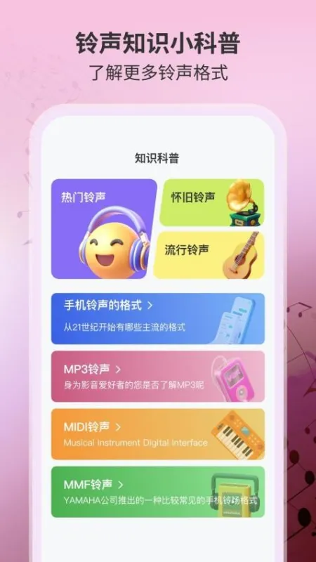 诸多铃声科普知识,可在线详情掌握铃声格式小知识,方便日常高效畅快使用;