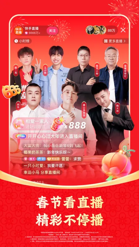 高清低延迟直播体验,弹幕聊天、礼物打赏、连麦PK一气呵成,与主播、好友、同城人实时热聊,氛围感拉满。