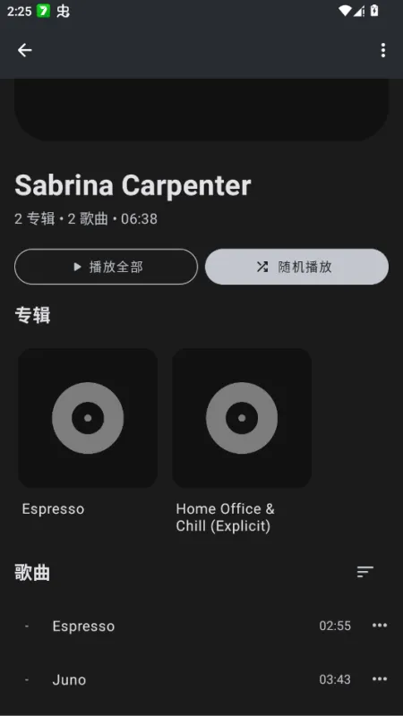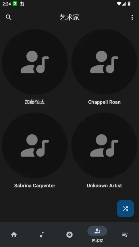 扫描完成后,所有识别到的歌曲将自动归类至「歌曲」「专辑」「艺术家」等分类中,可直接点击播放。