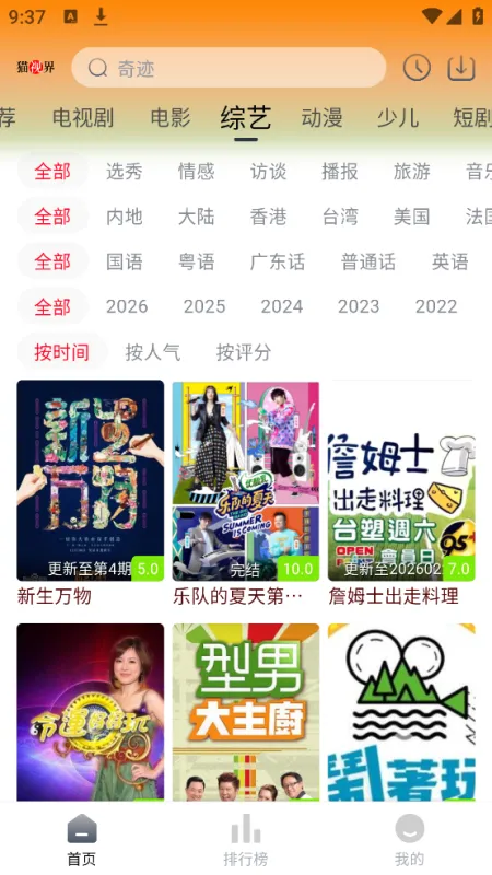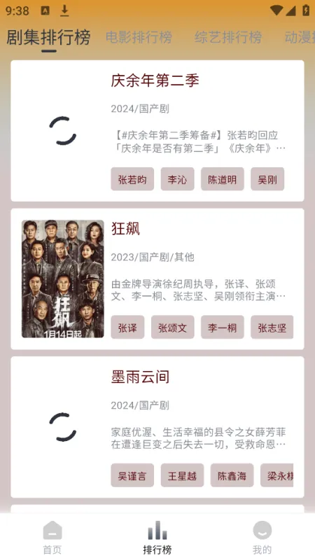 3.点击排行榜,即可看到最新的剧集排行榜、电影排行榜、综艺排行榜、动漫排行榜等。