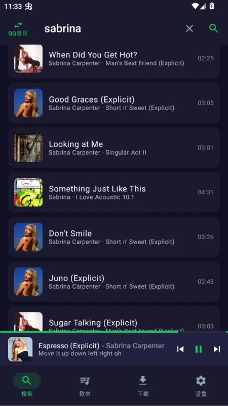 1.输入你感兴趣的歌手或者歌曲名称进行检索