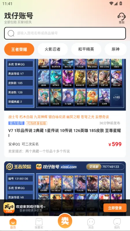 戏仔账号APP是千万玩家信赖的游戏账号交易神器,涵盖手游、端游、Steam 等全品类账号,每日新增 50 万 + 优质账号可选。支持免费智能估价、短视频看号、一键上架,实名认证 + 资金托管,7×24 小时客服全程跟进,成品号终身包赔,买家免手续费、卖家极速提现,闲置游戏账号安全变现、低价捡漏全搞定。