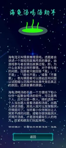 海龟汤喝汤助手是专为聚会与社交打造的推理助手,收录 500 + 原创精品海龟汤,涵盖清汤、红汤、黑汤等多种风格。通过提问还原离奇故事真相,支持多人互动、难度分级与语音记录,玩法轻量易上手,比剧本杀更轻松、比狼人杀更省心。内置逻辑题、脑筋急转弯与趣味段子,聚会破冰、约会升温、团建娱乐一站式搞定,推理爱好者的随身快乐神器。