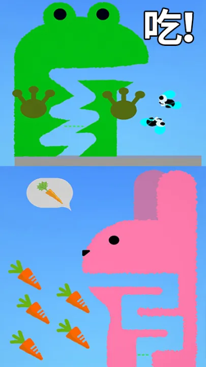 1、按照游戏关卡要求,吃下要求的食物以及对应的数量,才能成功闯关。