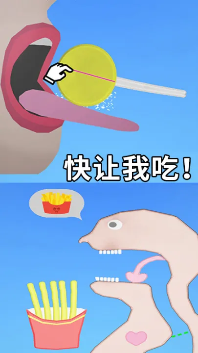 2、想尽一切办法,排除各种阻碍,滑动屏幕将食物将食物送进嘴里。