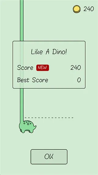 2、左右滑动来接住掉下来的方块(恐龙的颈项),接到越多方块,分数就会越高,小恐龙的颈项也越来越长;