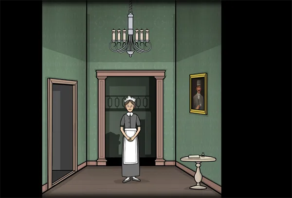与女仆对话签约→取乌鸦羽毛蘸墨签名→接受早餐任务→观察三幅家族肖像(Aldous摇表3次/Alexandra竖指2根/William眨眼5次)→依数字线索235打开橱柜取糖罐→在墙洞获死鼠→喂猫得火柴→收集木柴、燕麦碗、牛奶瓶、小壶→依便条步骤烹煮燕麦粥(炉火→加料→加热→盛出)。