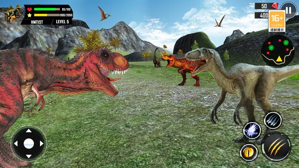 1、成长系统,恐龙不会立即显得很大,需要照顾。你需要培养他。为此,你需要生存、寻找食物和饮料,并避免来自其他肉食恐龙(例如巨龙、重爪龙或暴龙)的潜在威胁。