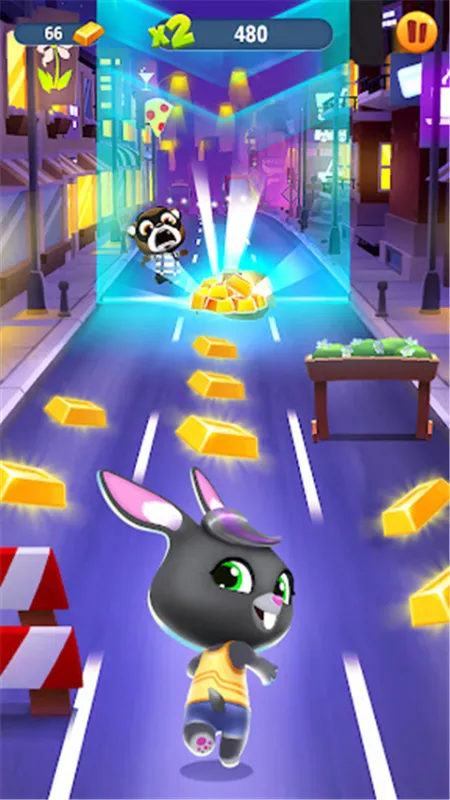 跳跃、滑铲、侧闪是《汤姆猫跑酷》的生存基本功。汤姆与伙伴们化身轻功宗师,在疾驰中灵活穿行——迎面卡车?空中翻滚!地面水坑?滑铲贴地!低矮路障?腾空跃过!小技巧奉上:障碍即将命中瞬间触发闪避,角色仅短暂眩晕不倒地,操作容错率大幅提升,高手进阶必备心法。
