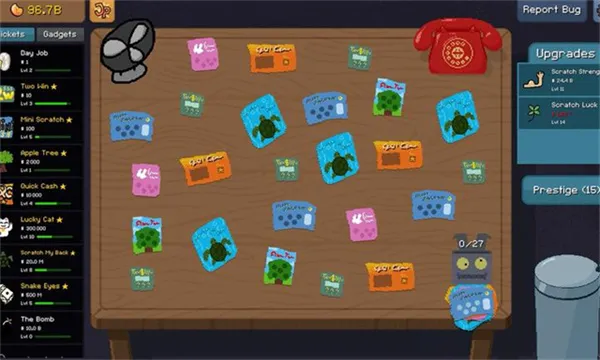 4、每次刮奖都带来长效属性成长,升级运气与奖金倍率加速积累,解锁自动化后离线也能继续刮,越玩越轻松;