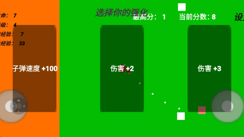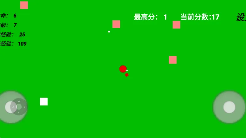 3、最后进入游戏就可以开始体验了,左边轮盘可以移动,右边轮盘可以发射子弹。