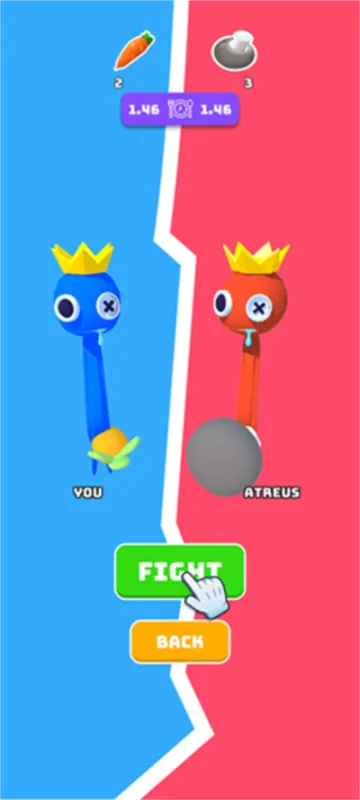 3、在美食对决中与彩虹朋友一较高下! 尽可能快地轻拍以增加体重并赢得饮食比赛!