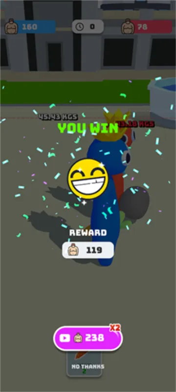 4、持续使用食物道具,对比拼双方的体重数值,最终击败对手,获取对战奖励。