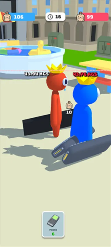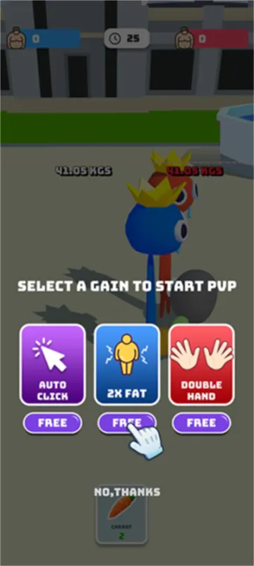 3、比拼过程中点击香菇类食物道具,为自身角色增加体重,提升对战数值。