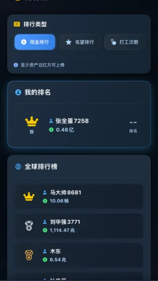 从零开始的首富,超爽文字商战养成!你将从一穷二白开始,靠打工、投资、并购打造商业帝国。招募各路人才组建团队,低买高卖操盘股市,解锁科技树抢占高端市场。从草根到首富,每一步选择都影响财富命运。实时财富榜比拼,多产业联动策略,轻松上手又深度烧脑,圆你掌控全球经济的首富梦!