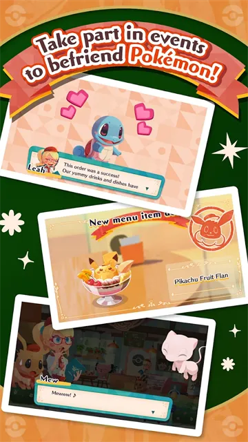 过关并完成料理后,将会由宝可梦来品尝料理的滋味,透过提供美味的料理,可以提升与宝可梦之间的友好度,让友好度达到MAX后,宝可梦就会加入店员的行列。