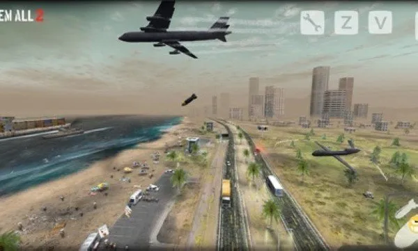 疯狂拆城市,点数换神兵:你可以闯进不同地图尽情破坏,城市毁得越凶,从政府那拿到的点数就越多,还能用来解锁更猛的轰炸机。