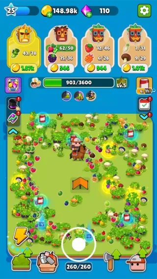 1、随着游戏的进行,您会发现可爱的宠物,它们将帮助您更快地收集水果和蔬菜。