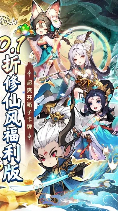 大话蜀山 0.1 折版,Q 萌国风仙侠福利巨作!充值永久 0.1 折,648 礼包仅 6.48 元。上线送悟空、百抽与极品装备,七日领红将蚩尤。开箱修仙、挂机战斗,佛 / 仙 / 魔阵营策略百变。Q 萌仙侠、华丽特效,洞府、宗门、跨服仙战玩法全。BOSS 掉元宝、升级送万充,不肝不氪,轻松渡劫飞升,畅享极致修仙快感。