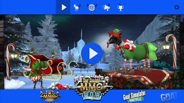 1、启动《模拟山羊MMO》中文版,点击主界面第二个选项——‘选择你的山羊’。若误入默认角色?右上角切换按钮随时待命,一秒换羊不卡顿。