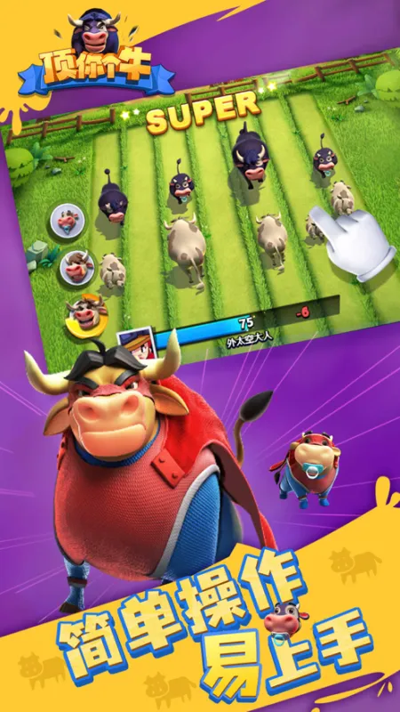顶你个牛,超上头合成对战小游戏!5 赛道策略攻防,合成高阶神牛,同赛道比拼力量,把对手顶飞扣血。魔性画风、趣味音效,数十种萌牛等你收集。一键匹配实时对战,关卡挑战乐趣无穷。操作简单、节奏轻快,策略与运气并存。合成升级、布阵对决、欢乐解压,老少皆宜,随时开启爆笑斗牛大战!