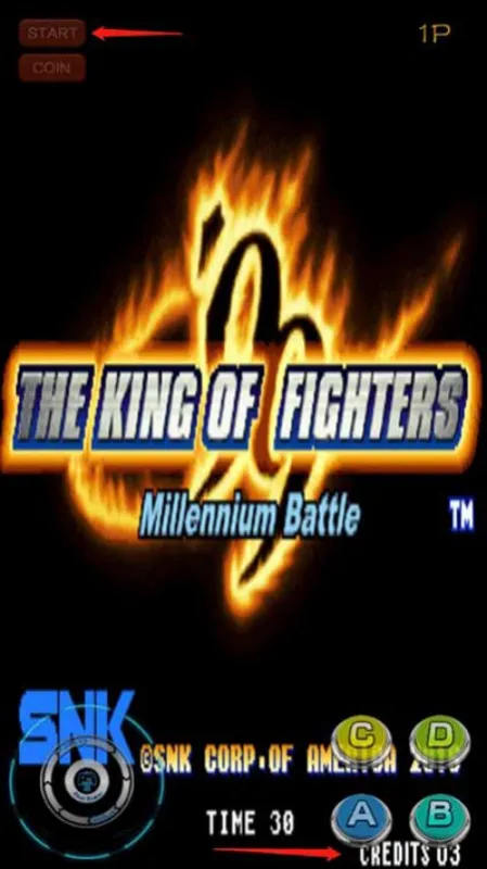 3、待右下角credits显示数字后即投币成功,接着点击左上角START开始游戏