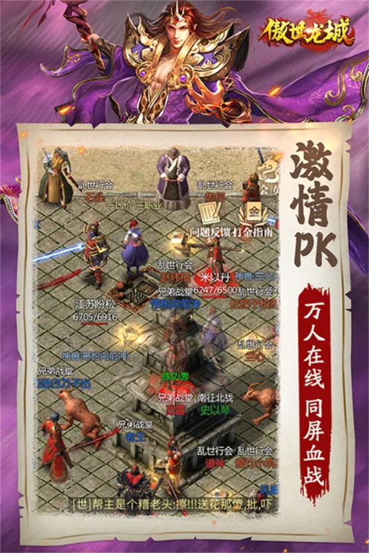 正版传奇大作傲世龙城震撼上线!高清画质还原经典玛法大陆,万人同屏攻城、跨服热血对决,战法道技能原汁原味。超高爆率副本、自由交易摆摊,神装满地爆。更有挂机升级、神兽坐骑、炫酷羽翼,战力轻松飙升。兄弟集结,热血攻城,重温当年传奇热血,铸就属于你的龙城霸业!