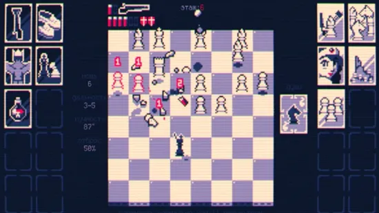 游戏是Steam游戏的移植版,玩家可以在手机里尝试这款与众不同的象棋以及射击战斗融合的冒险游戏。游戏里玩家将与对手射击战斗,通过国际象棋的走法来不断的移动位置,将所有的敌人棋子消灭就能够完成闯关,像素的画风怀旧的色彩