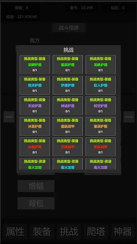 4.收集与目标:收集并养成强力神器,解锁独特称号,完成各类任务。