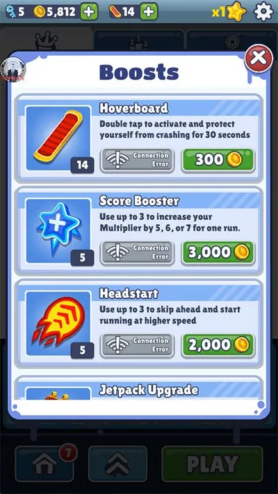 此外,地铁跑酷AZ版也是加入了原版的道具,如飞行背包,磁铁,双倍得分等众多游戏道具,玩家可以使用磁铁道具,使角色更容易吸收金币,或者使用双倍金币道具,在一段时间内将金币的分数加倍,这些道具能够帮助玩家更好地完成任务并突破难关。ps:进入游戏卡密为:5eff809384