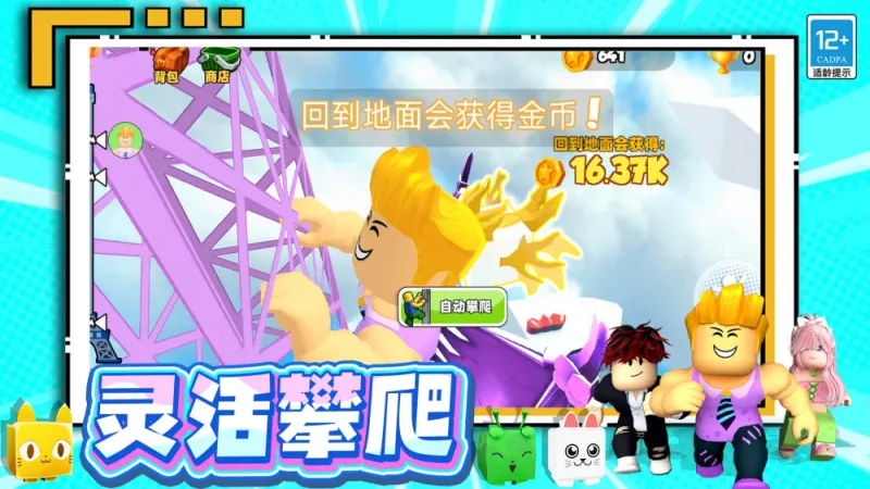 1、游戏画面采用3D卡通风格,搭配动态光影与物理反馈系统,营造沉浸式攀塔体验,适合朋友聚会或亲子互动时游玩。