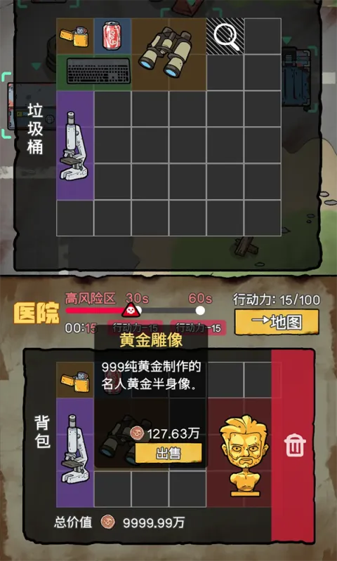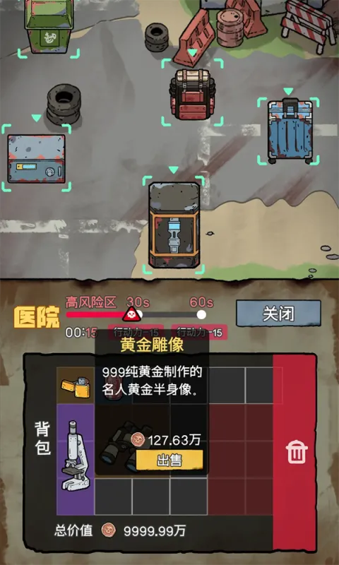 点击场景内物品进行搜索,双击获得的物品即可放入背包中。