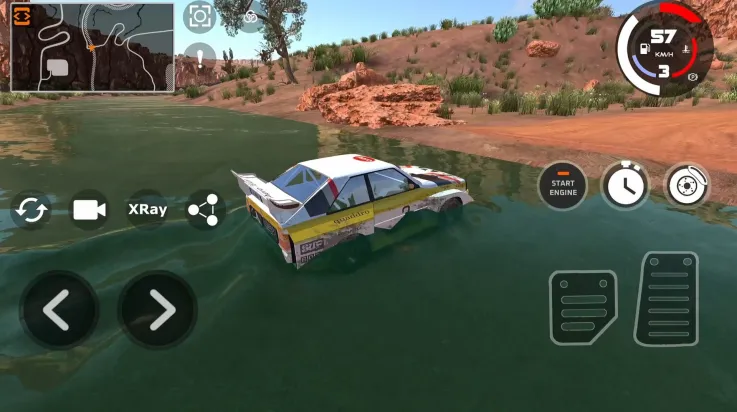 1、沙盒模式:玩家可以在充满陷阱、跳跃和障碍的地图上自由驾驶,或者自定义设置自己的地图,享受无尽的碰撞乐趣;