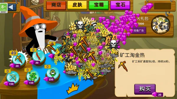 核心资源为宝石,可用于购买技能、道具及皮肤。