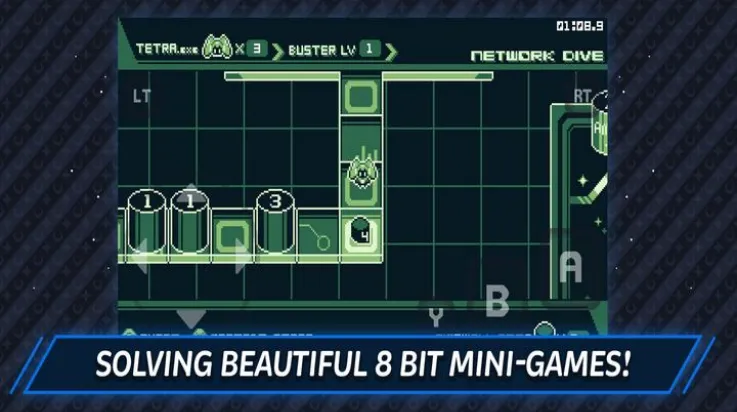 2、机器人伙伴:玩家将与可靠的机器人伙伴泰特拉一起完成任务。泰特拉可以潜入故障网络来协助贝拉完成任务,每个网络都有自己的迷你游戏挑战,完美展现了复古8位风格的审美。