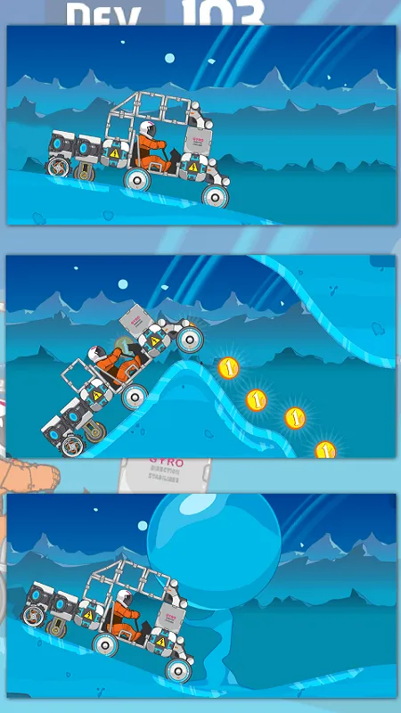 4、游戏的操作非常简单,玩法类似于登山赛车,如果车头翘起玩家就按住刹车;