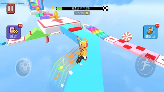 3、部分关卡嵌入可互动元素,如拉杆控制桥梁、能量方块激活跳板,将跑酷操作与轻解谜策略融为一体。