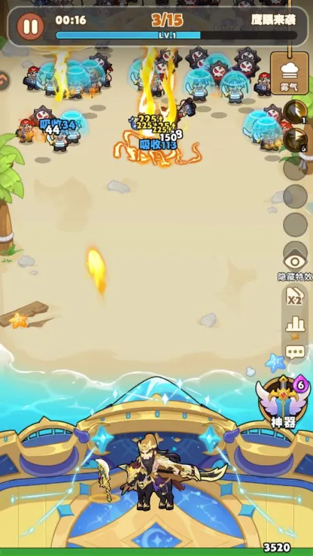 ◎这方面的感受就是很常见的放置式塔防设计,所谓的航海标签也只不过是将常规意义上的城堡给改为了船只而已,进入关卡之后角色会自动对敌人进行普攻,因为开局赠送的只有普通的草帽小子所以也没得选,后续就是大家都熟悉的击杀敌人升级,然后进行技能的三选一,因为说到底还是跟基础攻击力息息相关,所以技能只分为了减速和伤害这么几种类型。轻松倒是挺轻松的,因为前期免费试用的有不少神器,但就是后面的乐趣有些跟不上,闯关和养成起来都不是很舒服。