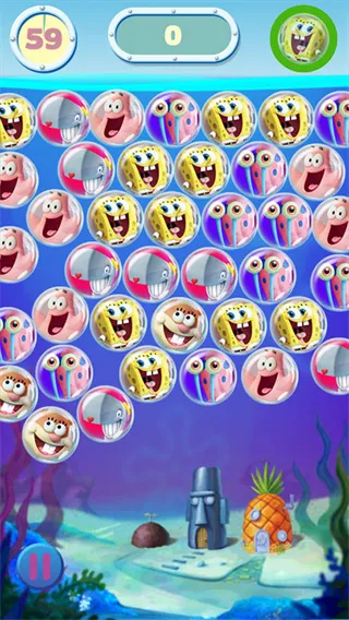 2角色互动:与海绵宝宝、派大星、蟹老板等经典角色互动,解锁专属技能,助力泡泡消除。
