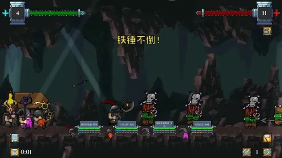 招募更多矮人:通过击败敌人获取经验与金币,在商店中购买新的矮人加入队伍。