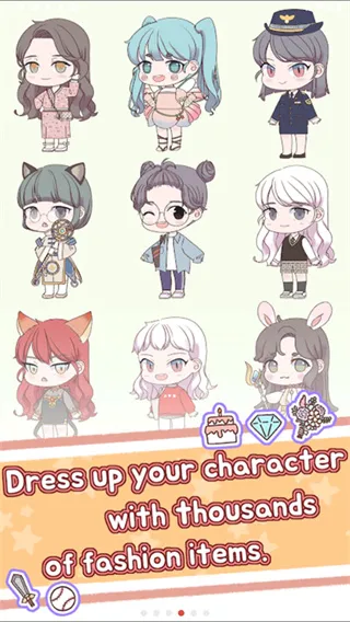 装扮搭配:游戏提供海量时尚单品,包括?服装、饰品、翅膀、贴纸?等,你可以从头到脚为娃娃进行搭配,尝试各种风格。