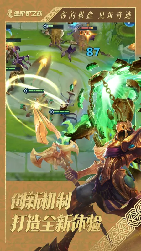 金铲铲之战是优质策略对战手游,改编自端游云顶之弈,移植经典玩法与英雄至手机。匹配对局英雄随机,需依克制与羁绊组合理阵容,升级版本强势英雄,凑多羁绊快速成长,助你在对局中立于不败之地。